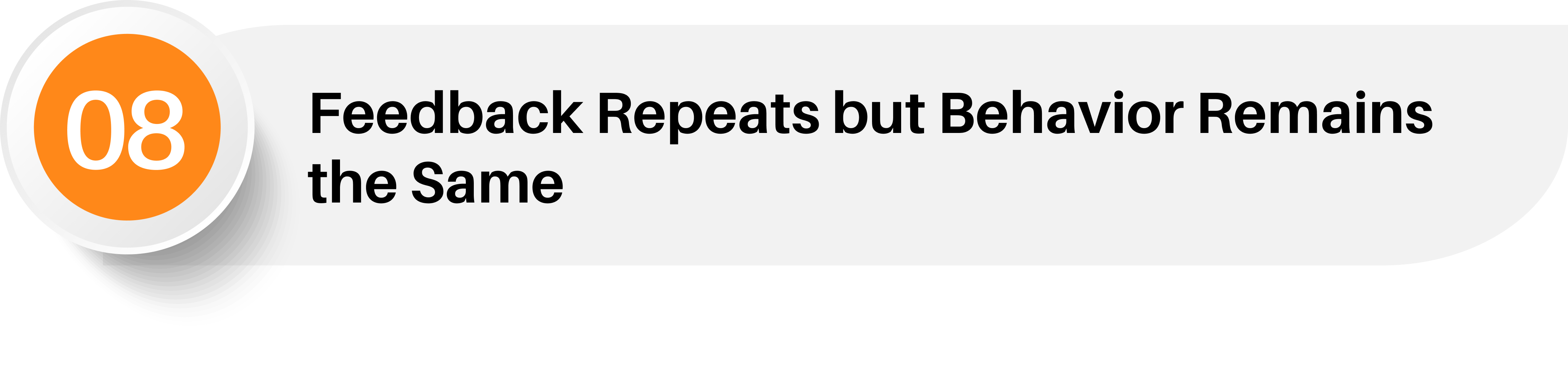 When the same feedback surfaces year after year, unclear communication, lack of collaboration, or defensiveness, it means awareness exists, but personal change has not followed.
