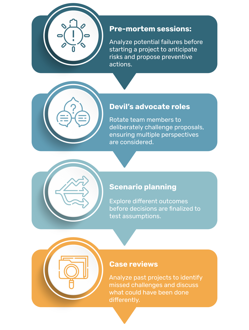 • Train employees to substantiate concerns with evidence, such as metrics, reports, or prior project learnings.