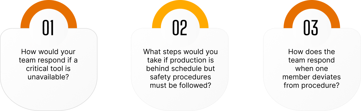 Training presents realistic situations where employees must choose between shortcuts and proper procedures. These scenarios help employees think through critical safety decisions before facing them on the production floor.