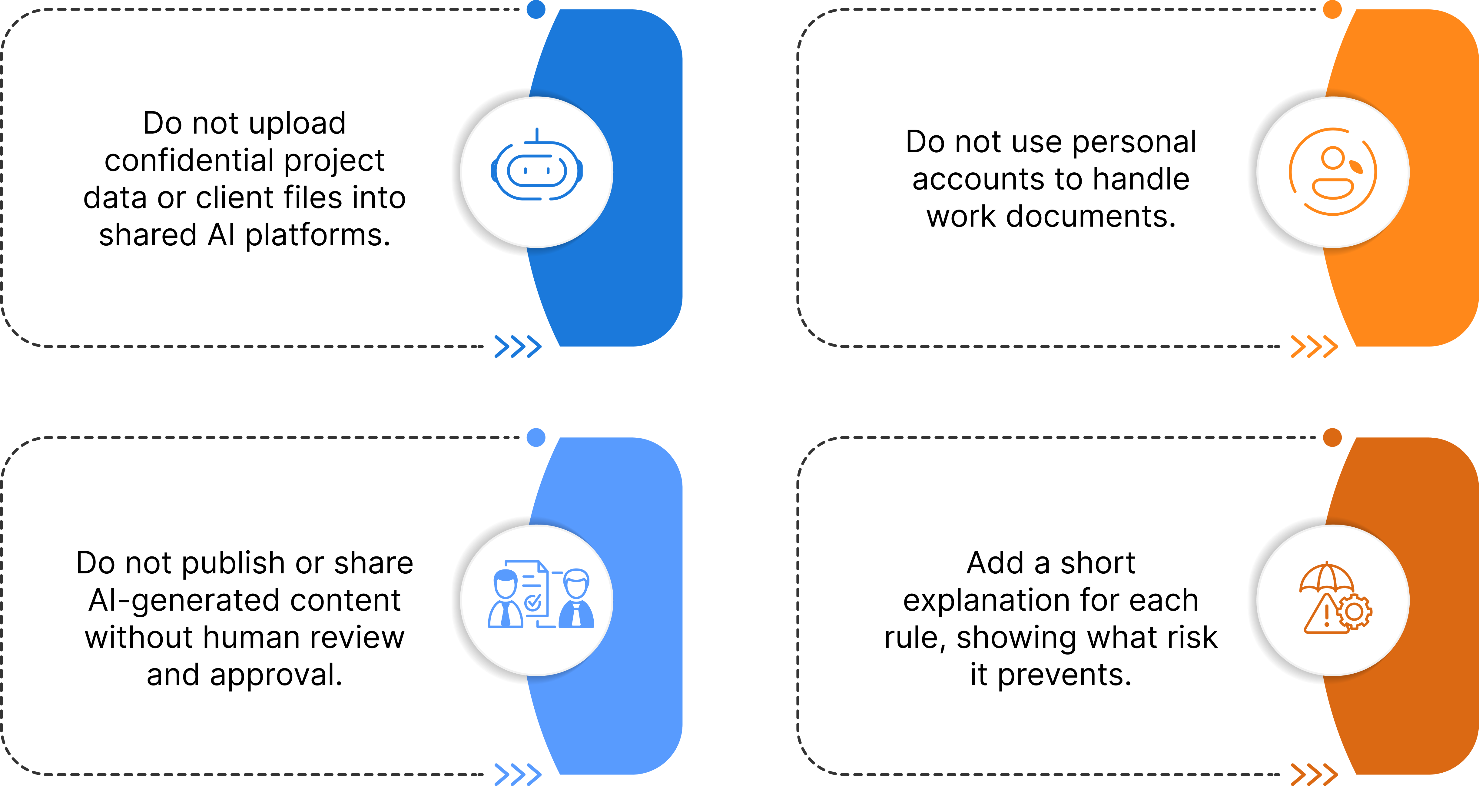 A good AI policy gives clarity, not control. It helps people know what they can safely do rather than only listing what they cannot. The best policies are simple to follow, easy to update, and explained in plain language that every employee understands.