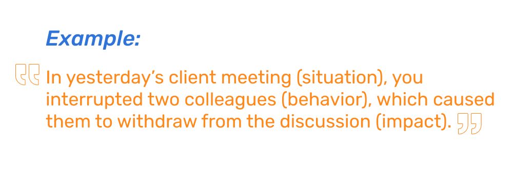 Why it works: People avoid feedback when it feels like a judgment on who they are instead of what they did. The SBI method anchors the conversation in facts, reducing personal defensiveness.
