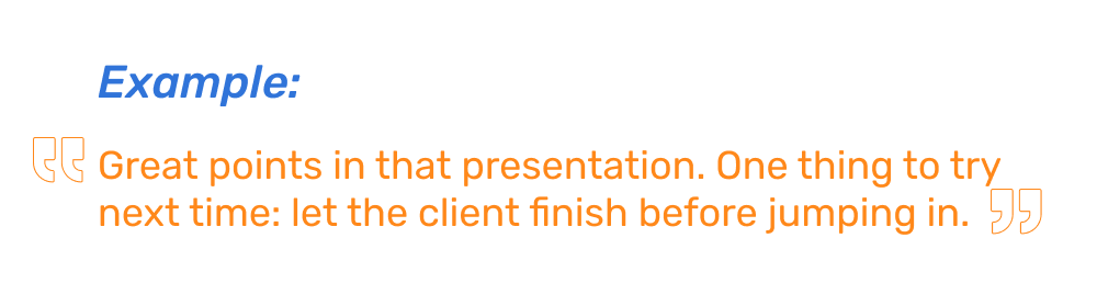 Why it works: Big, infrequent feedback sessions feel intimidating. Smaller, real-time notes normalize feedback as part of daily work.